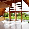 C’est Jean-Baptiste Lamine, architecte de l’agence ARBA, qui a lui-même construit cette maison. Le chantier a duré 18 mois, avec la collaboration d’un charpentier qui a monté les 4 fermes en lamellé collé. Construite en bois, un matériau léger et durable, la maison s’intègre parfaitement dans son environnement naturel. Elle a été également conçue selon une démarche environnementale qui se caractérise par l’absence de terrassement du site, l’utilisation du chauffage au bois et de l’énergie solaire. Elle a été isolée avec de la laine de roche. Son originalité lui a permis de remporter le prix « Coup de cœur » au Salon de la maison de Blois en 2006.