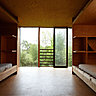L’intérieur est entièrement tapissé de Batipin. Il recouvre les murs, les sols, est utilisé pour fabriquer des coffrages et a été choisi pour servir de base à tous les rangements. Ce contreplaqué de pin, s’exprime ici dans tous ses états. Beau, brut, vernis ou non en version nature et mate, avec ses chants d’origine, il est facile à mettre en œuvre et d’un prix très accessible. Très veiné, il offre un effet papier-peint. Ecologique, il est fabriqué avec une colle à l’eau et ne dégage pas de COV. Toutes les qualités pour dessiner un lien entre les différentes pièces de cette maison. Ce bien est à vendre par l'agence immobilière Architecture de collection : www.architecturedecollection.fr