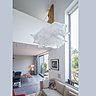 Les fenêtres Soleal 65 de Technal ont été choisies. Elles ont été posées en applique sur les briques pour minimiser l’épaisseur de l’aluminium. A la finesse des profilés s’ajoutent les performances thermiques des châssis vitrés, l’optimisation du clair de vitrage et des apports de chaleur et de lumière qui ont favorisé l’obtention du label BBC Effinergie. Tandis que l’effet satiné de leur teinte anodisé Purite contraste avec la couleur grise de la brique. Au rez-de-chaussée, un châssis fixe de 3,5 m de hauteur sur 1,5 m de large inonde le salon/séjour et la mezzanine. Un second niveau, c’est une fenêtre de 1,2 m de hauteur sur 3,5 m de large qui offre, à la chambre des parents, un panorama depuis le lit. Tandis que dans côté de la salle de bains, un mur vitré prolonge son volume ouvert sur l’extérieur. Et les murs ouverts des deux terrasses reproduisent le dessin des baies coulissantes Soleal, tout en respectant le règlement d’urbanisme qui interdisait, à cet étage, la pose de menuiseries. Ce choix architectural allège aussi l’impact du pignon et s’harmonise avec les lignes des différentes fenêtres.