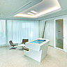 Les clients peuvent découvrir tous les nouveaux produits et services. Des tables avec des écrans tactiles invitent à l’échange et se transforment facilement en salle de réunion pour des entretiens. On accède aux dernières statistiques du marché mais aussi aux résultats sportifs, etc.