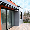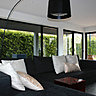 Une architetcure très sobre qui met l'extérieur en valeur, grâce aux 2 niveaux de terrasse et à la présence d'une pergola, d'où l'on peut admirer le jardin en contrebas.