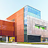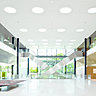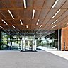 L’intégration dans le paysage a été possible grâce à la légèreté et la perméabilité visuelle des matériaux utilisés. Un bâtiment en verre réfléchissant et en acier inoxydable a été imaginé. Le parking extérieur converti en parking souterrain libère ainsi l’ensemble du parc pour offrir un paysage de verdure continu. Le nouveau bâtiment s’intègre naturellement à l’existant, qui avait été pensé de façon à ce que les différentes ailes de bureaux se croisent, formant ainsi une sorte de cloître.