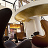 La luminosité tient un rôle important, elle révèle les matériaux. L’éclairage par Leds restitue les sensations d’une lumière naturelle, qui évolue du matin au soir, et au fil des saisons. D’impressionnants luminaires à l’esprit sixties, et de design contemporain des artistes Mathias et Matteo Messervy, illuminent le centre. L’axe central est découvert et devient un « lounge cathédrale ». Des espaces de repos sont meublés par les designers des sixties. Chacun expose une stèle muséographique, avec des miniatures du mobilier et les raconte. Le plafond blanc du centre a été déposé. De nouveaux moules en forme de cabochons incurvés, identiques aux originaux, dorés de feuille de cuivre, ont été remontés comme neufs. Ils rappellent les mailles du couturier emblématique de ces années, Paco Rabanne.