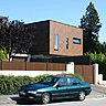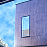 A l'étage, un cube à ossature bois en porte à faux sert de marquise, protège les visiteurs des intempéries et permet à la lumière zénithale de pénétrer au rez de chaussée et d’inonder le patio.