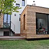 Les murs de l’extension et la surélévation sont composés de panneaux en ossature bois, avec isolant en laine de bois entre les montants. Ce procédé offre une isolation thermique naturelle, en hiver et en été. Bardage en red cedar à l’extérieur, terrasse en ipé, parquet à l’intérieur, la chaleur du bois s’impose ici pour ses avantages esthétiques comme techniques.