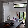 Dispositif énergétique : ré-isolation de la toiture avec végétalisation qui augmente rupture thermique entre extérieur et intérieur, remplacement des menuiseries côté jardin, rajout d’un insert pour chauffage avec cheminée dont profitent l’extension et la trémie ouverte