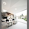 Outre un travail sur les apports de lumière naturelle indispensables avec notamment la percée d’une faille dans le plafond, l’architecte a proposé un éclairage artificiel doux et aérien en intégrant des luminaires à Leds dans le l’architecture particulière du plafond. Comme des halos lumineux, ils éclairent la totalité de l’espace et mettent son origami immaculé en renforçant le jeu d’ombres et de lumière propre au pliage !
