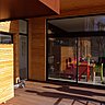 Un jeu subtil entre sols naturels et sols artificiels créent des rythmes et brisent la longueur du bâtiment. La maison alterne bardage en mélèze massif non traité qui grisaille avec le temps et panneaux de Fundermax, un stratifié composé d’un mélange de sciure de bois et de résine et pressé et collé à chaud. A l’intérieur, la jonction des deux bâtiments s’effectue par la galerie de l’entrée. La maison réalisée en six mois a nécessité un peu plus de matière qu’un chantier classique en ossature bois. Elle possède plus d’inertie thermique pour accentuer le confort en été, accumuler la chaleur et la restituer avec un décalage. Les murs en panneaux de Leno ® de FinnForest sont isolés avec 80 mm de laine de bois à l’extérieur et 45 mm de laine minérale à l’intérieur. Les planchers sont protégés par de la ouate de cellulose.
