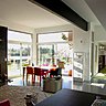 «Nous avions acquis la petite maison à gauche sur ce terrain. Nous l’avons habité avec le projet non réalisable de faire construire dans cette zone inondable. L’architecte Marc Lafagne nous a proposé de construire sur la partie non inondable et d’étendre la construction existante sur la gauche à l’ouest en s’appuyant sur le pilier de l’atelier existant à droite. Aujourd’hui, l’ancienne maison est devenue le lieu de travail de mon épouse, et l’atelier a été démoli», explique Jean-François Rubio, largement impliqué dans ce chantier, car en tant que propriétaire, il en a aussi assuré la décoration intérieure.