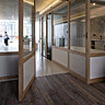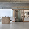 Les espaces communiquent entre eux sans rupture de style ou de couleur. Les pièces ne sont pas délimitées de façon classique, mais la partie jour et la partie nuit cohabitent en harmonie, ou alors se séparent en fonction des moments de la journée et de ses activités. La chambre et la salle bains attenante sont séparées de la pièce de vie par des fenêtres intérieures, que l’on peut occulter avec des stores et des rideaux. Et derrière ses meubles aux façades uniformes et blanches, la cuisine ne laisse pas deviner sa fonction.