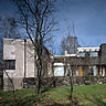 Sise dans un quartier résidentiel offrant une vue imprenable sur la mer, qui appartient désormais à la banlieue d’Helsinki. Il a fallu deux années pour voir le projet se concrétiser, puisque le terrain fut acquis en 1934. Avec son toit plat, la forme de la maison correspond aux principes architecturaux d’Alvar Aalto, où la route doit se trouver à l’arrière de la maison, alors que la façade principale doit faire face au jardin. Ainsi le côté rue est assez austère, avec un simple porche en guise d’entrée, ouvrant sur une cour de graviers. Bien que cette façade sur rue présente une certaine sévérité, comme fermée sur elle-même, elle est adoucie par un chemin d’ardoises planté sur le pourtour. Mais, il faut contourner la maison, pour la voir peu à peu s’ouvrir sur l’extérieur.