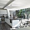 Construite sur un terrain de 5600 m², la maison développe une surface totale de 340 m². Au rez-de-chaussée, elle se compose d’un vaste espace de vie, avec salon double hauteur, salle à manger et cuisine, un espace bureau-salon de 90 m² et une chambre avec salle d’eau. Desservi par un escalier suspendu en acier et bois, l’étage en mezzanine comprend trois chambres, une salle de bains et un grand salon. Le sous-sol accueille un bureau, une salle de jeux et une buanderie. Deux terrasses, une salle de bains extérieure et un garage complètent l’ensemble.