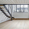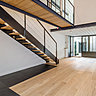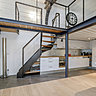 Epure des lignes, travail de la lumière, circulations envisagées dans les moindres détails, matériaux classiques, chics et nobles, Vincent Eschalier a habillé l’espace avec beaucoup d’élégance. Rien à voir avec les lofts aux matériaux bruts ou brique, béton et tuyauterie donnent le ton de la déco. Ici, les murs blancs contrastent avec les structures métalliques peintes en noir, dans un esprit très graphique. Les sols en parquet chaleureux et carrelage de grès cérame gris souris se répondent. Les volumes confortables, sans être gigantesques, sont facilement appropriables.