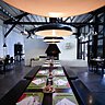 Tous les matins, un petit-déjeuner est servi au réfectoire où les manufacturiers se retrouvent « comme à la maison » avant de commencer leur journée de travail. Les salles de réunions de plain-pied sur le jardin potager favorisent la circulation dedans-dehors, ouvrant l’agence sur l’extérieur. Car la Manufacture est constamment en lien avec les autres, accueillant des artistes ou d’autres savoir-faire comme Kvadrat, Smarin & Philips, partenaires de l’exposition Acoustique Graphique installée dans le hall jusqu’à fin novembre 2012.