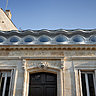 La brillance du zinc s’oppose à la matité de la pierre magnifiée. Et sur la façade en pierre qui ne reçoit jamais de soleil, les surfaces concaves et convexes du zinc capturent la couleur de la pierre. « J’ai cherché une idée qui s’accorde avec les frises et les sculptures existantes de la façade, qui n’était pas encore ravalée. J’ai introduit de la courbure avec un dessin d’œil. J’ai imaginé 7 oculus, un chiffre symbolique qui se rapporte au n° de la rue Mondenard, où elle est située, à Bordeaux, le 106 (1 + 6 = 7). Et les yeux en verre bombé, comme un masque de scaphandrier permettent de voir sans être vu…».