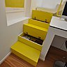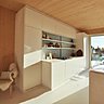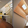 La boîte en bois, qui ne dépasse pas la limite constructive dictée par l’immeuble mitoyen, a été posée début octobre 2014 et le plafond ouvert fin décembre 2014. Pendant ce temps, l’isolation du toit et l’étanchéité ont été parachevées. L’ouverture du plafond a été effectuée au tout dernier moment afin que que toute la famille puisse continuer à habiter au 3ème étage pendant toute la durée du chantier. La nouvelle construction se compose de 3 panneaux de toiture (2 tonnes chacun) et 4 panneaux de façade. Les panneaux de toiture et de façade ont été transportés et mis en place par l’extérieur avec une grue. Le montage a duré 3 jours, sous les intempéries. Et les gravats ont été évacués par la terrasse. La liaison entre les deux plateaux s’effectue par le biais d’un escalier pratiqué dans la trémie de 3 mètres sur 2 mètres et créée au niveau de l’ancien lanterneau.