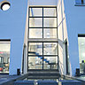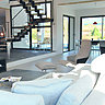 Le concept architectural a donné une place majeure à la luminosité. La villa contemporaine de 200 m2 au budget maîtrisé (2400 €/m2) est une prouesse architecturale d’ingéniosité. Le rez-de-chaussée, avec un séjour de 50 m2 d’un côté, et de l’autre avec l’accueil, la cuisine, le garage, un local technique et les commodités, est constitué d’espaces ouverts favorisant la circulation. L’architecte a joué avec les grands volumes, les circulations fluides et la lumière naturelle. Ainsi de la façade côté route, le soleil traverse un mur percé de pavés de verre et la baie vitrée du séjour. Ensoleillement maximal garanti pour le confort de tous, éclairant même la piscine. Côté Nord, de larges baies vitrées à triple épaisseur assurent une isolation hors norme. Toutes les solutions pour une économie d’énergie ont été appliquées. La consommation d’énergie annuelle est de 30 kwh/m2, et avec les panneaux photovoltaïques en toiture, elle est passée en dessous des 20 kwh/m2. En hiver, tous les espaces de la maison ont une température de 21°C quelque soit temps, y compris les espaces aux larges baies vitrées sur rez-de-chaussée. La consommation pour l’eau chaude et le chauffage ne dépasse pas les 500 €/an.