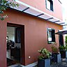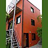 Cette maison rouge a été construite dans les années 1990 par l’architecte suisse Jean-Jacques Oberson, né en 1937 à Genève et diplômé de la section d’architecture de l’Ecole d’ingénieurs de sa ville natale où il travaille toujours. Oberson considère le projet d’architecture comme une source permanente de formation, et comme lieu de l’interaction entre les théories et l’expérimentation. Il élabore ses projets architecturaux dans une dynamique générale de respect de l’environnement. Ses édifices sont toujours conçus de façon à privilégier une relation cohérente et pertinente avec leur terrain d’implantation. C’est le cas de cette maison haute qui s’inspire des constructions des villages environnants de la région de Grasse.
