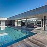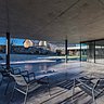 Espaces ouverts sur l’extérieur, volumes traités avec une horizontale marquée, espaces couverts en retrait, lignes sont droites… « Depuis la cour intérieure, la terrasse et sa couverture tracent des horizontales qui viennent cadrer le paysage de végétation au nord. Et cette ouverture vient perturber les volumes qui ferment la cour ». Un bel exemple de cohabitation de styles, entre tradition et modernité.