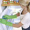 L’intérieur du réfrigérateur aussi doit être nettoyé (idéalement deux fois par mois). Après avoir vidé l’appareil, le compartiment principal, les tablettes et l’intérieur de la porte se lavent avec une simple éponge et un produit dédié et/ou de l’eau tiède avec un peu liquide vaisselle (attention à ne pas faire pénétrer d’eau dans le système d’éclairage du compartiment !). Les éventuels débris et miettes de nourriture qui pourraient se trouver dans les plis du joint de la porte, se retirent avec l’aide d’une brosse à dents. La surface du joint peut ensuite être nettoyée avec un peu d’eau propre puis séchée avec un chiffon doux. Enfin il ne faut pas oublier pas de dépoussiérer la grille noire à l’arrière de votre réfrigérateur. Il s’agit du condenseur. L’accumulation de poussière à cet endroit entraîne une augmentation de sa consommation d’électricité.