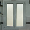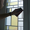 Nous avons choisi d’imprimer le motif sur un adhésif type « dépoli » qui a un effet vierge de verre givré. Un des gros avantages de ce type de sticker est qu’il empêche tout vis-à-vis ou vision de part et d’autre de la paroi vitrée pour offrir un maximum d’intimité. Par ailleurs, il laisse passer une grande partie de la lumière et permet de garder la clarté de la pièce et sa luminosité. Un adhésif transparent aurait rendu fade les couleurs et un adhésif opaque aurait assombri fortement la pièce.