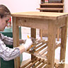 2- Pour commencer, dans le cas de teinture à l’eau, trempez un pinceau brosse dans la teinture, égouttez-le bien et appliquez-le sur le meuble. Teintez ensuite abondamment pour recouvrir toute la surface. Veillez à travailler toujours dans le sens du fil du bois.