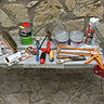 - Mastic de réparation (2 conditionnements différents, ainsi que 2 teintes différentes : travertin, blanc)
