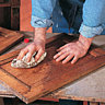 Si la couleur est ancrée dans la matière du bois, il n’y a pas de produits miracle ! Il faut directement utiliser une ponceuse électrique à bandes en prenant garde de ne pas détériorer le meuble. Pour cela passez-la lentement et uniformément, vous éviterez de faire des creux et des bosses.