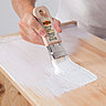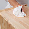 Apprêtez-le avec un enduit de préparation spécial bois. Cet enduit opacifie le support et bloque les remontées de tanins.