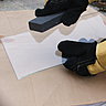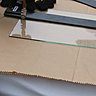 Le verre se manipule toujours sur chant (verticalement) et avec des gants. Attention aux éclats de verre qui sont dangereux et tranchants; pour cela nettoyer la table de coupe avec une balayette, et surtout jamais à mains nues.