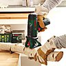 Sciez des rondins de 16 à 24 cm de long env. dans les troncs de bouleau de 5 à 6 cm d'épaisseur en utilisant la scie sauteuse sans fil PST 10,8LI de Bosch. Percez un trou de 6 mm de profondeur et de 12 cm de profondeur à la base des troncs plus courts grâce à la perceuse visseuse sans fil PSB 10,8 LI-2 de Bosch. Vissez les inserts filetés ( douilles enfichables avec filetage intérieur supplémentaire) avec un filetage intérieur M6 dans les trous.