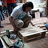 Etant actif sur internet par le biais de mes trois blogs, Bosch m’a contacté afin de m’inviter à la journée de lancement de leur nouveau site communautaire. Sélectionnés parmi les coups de cœur de la société dans les domaines de la décoration, du bricolage et du jardinage, nous étions cinquante blogueurs à participer à l’avant-première du Coin des Bricoleurs, tous invités à Paris à la Cartonnerie. Réunis autour d’ateliers géants, des challenges nous ont été proposés sur le thème du recyclage de palettes ou de caisses en bois, afin de confronter nos différentes expériences et notre créativité.