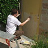 - peinture glycérophtalique blanc satiné et colorant universel ocre ou peinture teintée ocre jaune toute prête