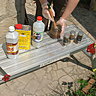- pigments pour la coloration teinte faux bois : terre de Sienne naturelle (dominante), terre d’Ombre brûlée, terre d’Ombre naturelle