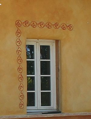 Ces sgraffitis, tout en volutes, réalisés par Martine Moulet (Entreprise calterra à lIsle -Arné dans le Gers), réclament des dessins bien plus élaborés que celui présenté dans notre mise en oeuvre.