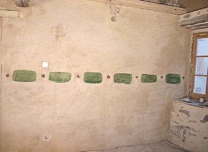 Les incrustations se font sur le corps d'enduit Pour une frise, la hauteur habituelle se situe à 90 cm au dessus du sol, mais toutes les fantaisies de hauteur sont autorisées, selon l'effet désiré. Tracez les emplacements de chaque motif: |