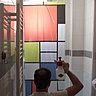 Le choix du motif des stickers s’est porté sur un visuel Mondrian : coloré et indémodable. Il donne toujours un effet sympathique et élégant, sans être trop chargé.