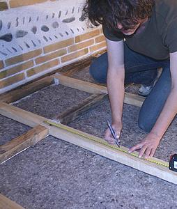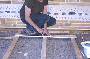 Découpez les traverses de 39 cm (ou étrésillons) dans les lambourdes, avec précision. Lors de la mise en place, vous pouvez prendre mesures: