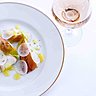 Avec la raviole potagère et le consommé végétal de toute première finesse, le rosé des Vignerons du Baou à la robe intense, au nez de fruits rouges, à la finale longue et vivifiante est d’une grande classe. Le domaine de Siouvette au nez de bonbon anglais, à l’attaque vive, à la belle profondeur, est passé en fûts de chêne, d’où ces arômes un brin boisé. Le magret de canard aux feuilles de figuier s’acoquine volontiers du Prieuré du château Sainte Roseline : élevé sur lies, sa robe soutenue, son palais assez profond, complexe et affirmé est parfait.