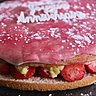 Déroulez la pâte d'amandes et formez un disque de la taille du fraisier et recouvrez le dessus du fraisier.