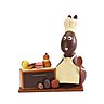 Ces joyeux lapins arrêtent le tic tac du temps et rêvent de mettre la main à la pâte dans cet atelier entièrement prêt à être grignoté. Petits et grand enfants trouveront l’issue gourmande, autour d’une table où les pâtisseries sont à portée de main, des regards candides des lapins en chocolat aux moustaches suggérées, des dalles rustiques en chocolat au lait, aux placards en 3 chocolats jusqu'au tablier immaculé du chef.