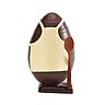 L’oeuf chef est un sujet de 273 g , en chocolat noir et au lait, tablier en chocolat ivoire, socle en terre de chocolat. 49 €