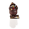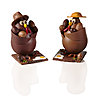 La Chococotte : en chocolat au lait de 240 g et de 15 cm de haut, le sujet est à dominante chocolat au lait et chocolat ivoire, composé de 2 oeufs feuilletés, d’un oeuf sur le plat en chocolat et de 3 oeufs pralinés avec éclats d’amande ou à l’ancienne. 55 €