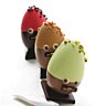 Bien qu’il n’ait que peu de points de vente, ce chocolatier innove et a des idées originales : sa sculpture chocolatée est une composition originale avec quelques 80 petits œufs de chocolat blanc aux couleurs pastel collés les uns aux autres et assemblés en un gros œuf. 45 €, www.chocolat-chapon.com