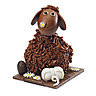 Frisoton et Frisette sont 2 sujets en chocolat noir, chocolat au lait et chocolat ivoire. Pièce composée d’une brebis lait Frisette et d’un agneau noir Frisoton. Barrière, pelote de laine et socle de terre en chocolat. Œuf praliné. Pâquerettes en pain azyme recouvert de chocolat ivoire. Amandes hachées. 100g de garniture de Pâques. 120 € la pièce de 700g Dimensions : L 26.5 cm x l 12.5 cm x h 17 cm