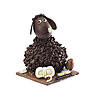 Frisoton noir est un sujet à dominante de chocolat noir, chocolat au lait et chocolat ivoire. Agneau en chocolat noir, pelote de laine et socle de terre en chocolat. Œuf praliné. Pâquerettes en pain azyme recouvert de chocolat ivoire. Amandes hachées. Garniture de pâques. 57 € le sujet de 250g Dimensions : L 12 cm x l 12 cm x h 14 cm.