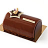 Dalloyau joue les Divas avec sa bûche en robe fourreau qui vous regarde de toute sa hauteur comme une star. Cœur de mousse au chocolat et crémeux au thé Darjeeling sur meringue et croustillant de nougatine. 57 € pour 6 pers.
