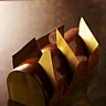 Avec Fauchon tirez délicatement le ruban qui ondule. Il s’en échappera un croustillant praliné, une crème à la vanille et un cœur fondant de caramel. Enchanteur ! 48 € pour 6 pers.