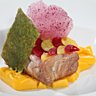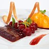 En entrée des ravioles de concombre marinées Pom-Cerise, un dos de cabillaud poché Pom-Grenade, purée de Butter-nut Pom-Mangue et en dessert les 4 Pom en gelée superposées, poire pochée dans le Pom-Grenade, sorbet Pom-Cerise et vanille bourbon. Bref, allez déguster ce menu savoureux.