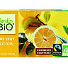 Vendue en grandes surfaces, la marque bio du groupe Léa Nature propose du thé en sachets individuels. Notre choix s’est porté sur le thé vert au citron, du thé vert parfumé à l’huile essentielle de citron issue de l’agriculture bio. De son côté le thé vert provient de la coopérative Dazhangshan regroupant 4 600 petits producteurs dans la province chinoise de Wuyuan. Env. 2,55 € les 20 sachets, www.jardinbio.fr